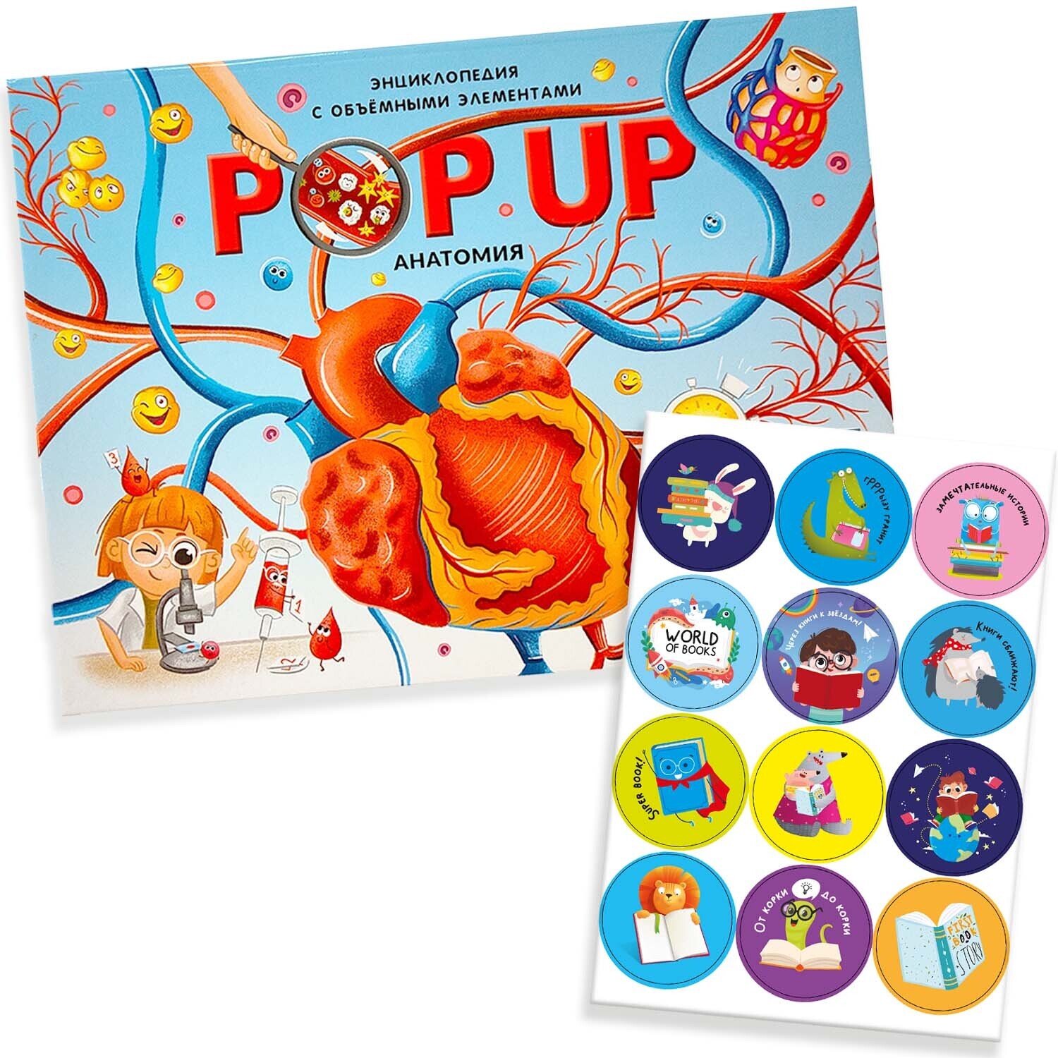 Набор POP UP 3D Энциклопедия с объёмными элементами Malamalama "Анатомия". Книжка-панорамка+ наклейка. Книга для детей 3D