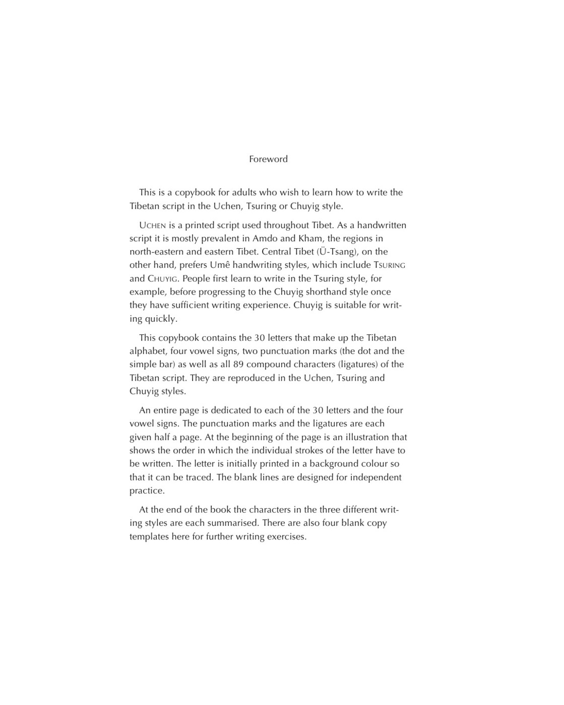 Tibetan Calligraphy Copybook in the Uchen, Tsuring and Chuyig Styles. Black and white