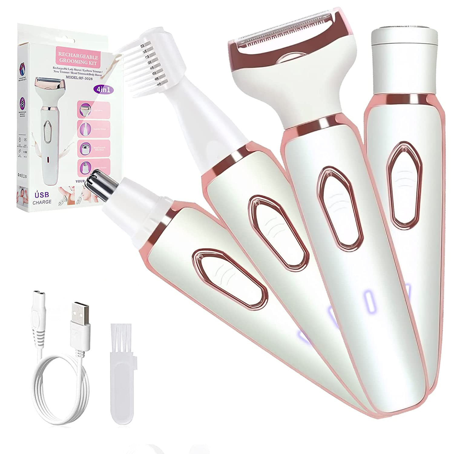 4 в 1 раз депиляция лица и ног женщины резьба волос депилятор USB зарядка (красный)