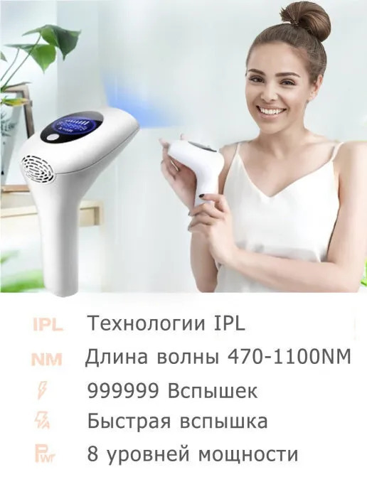 Профессиональный лазерный эпилятор IPL / лицо, тело, зона бикини, белый