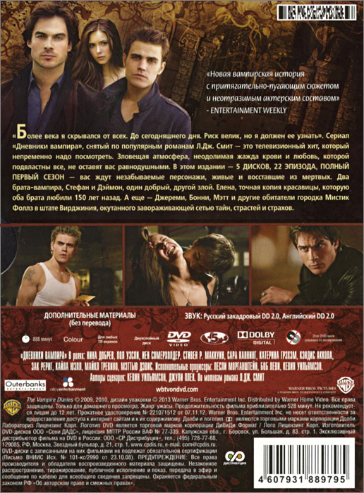 Дневники вампира: Сезон 1, серии 1-22 (5 DVD)