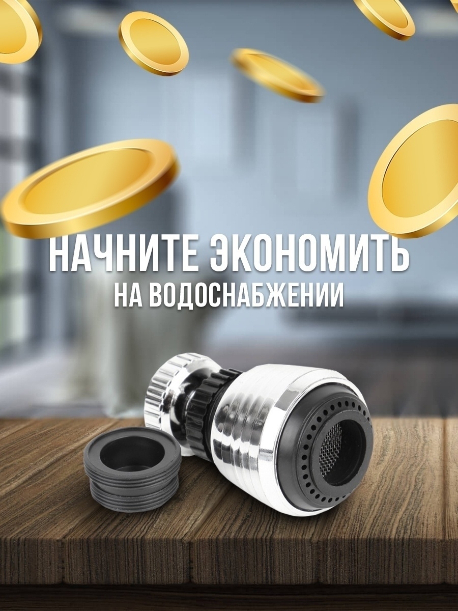 Насадка на кран для экономии воды с изменяемым напором и углом струи, аэратор для смесителя