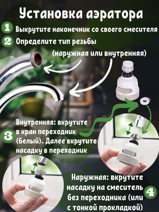 Насадка на кран /Аэратор на кран /Насадка для экономии воды /Кухонная водосберегающая насадка