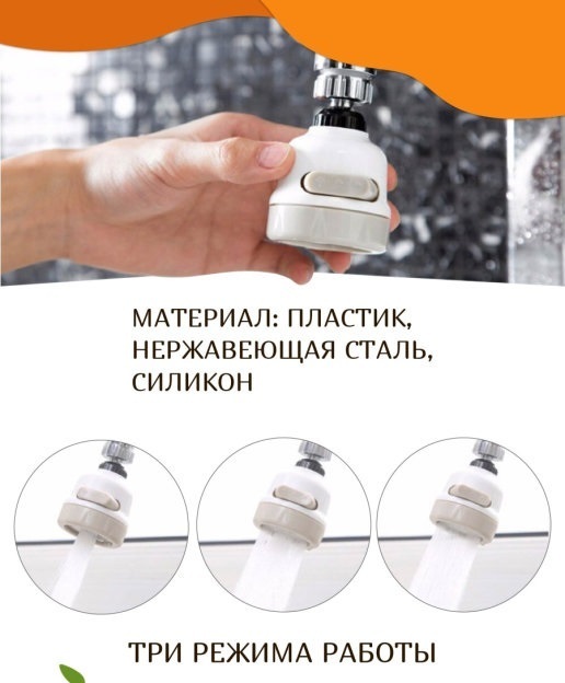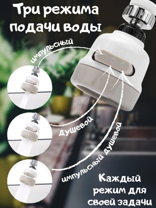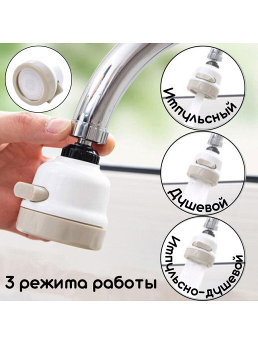 Насадка на кран для экономии воды Soft, аэратор для смесителя, 3 режима, диаметр 3/4 см
