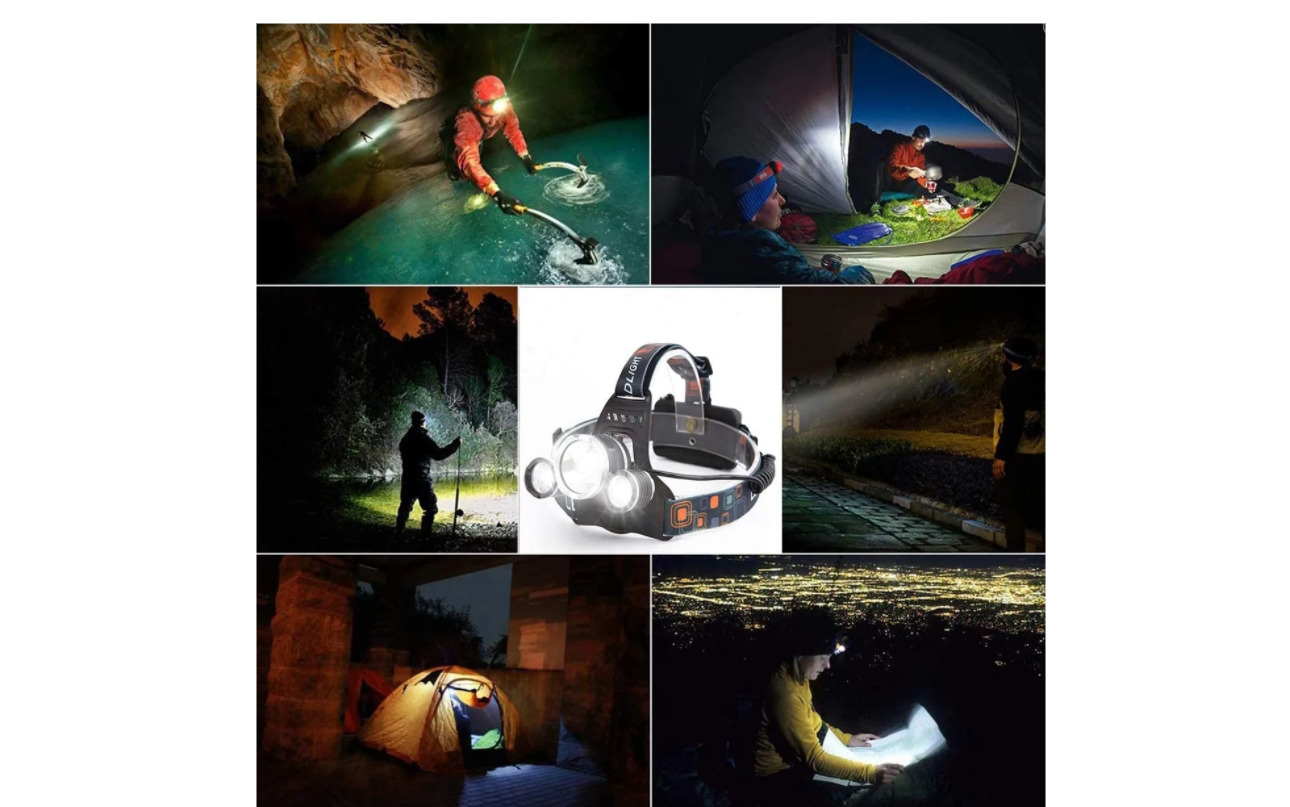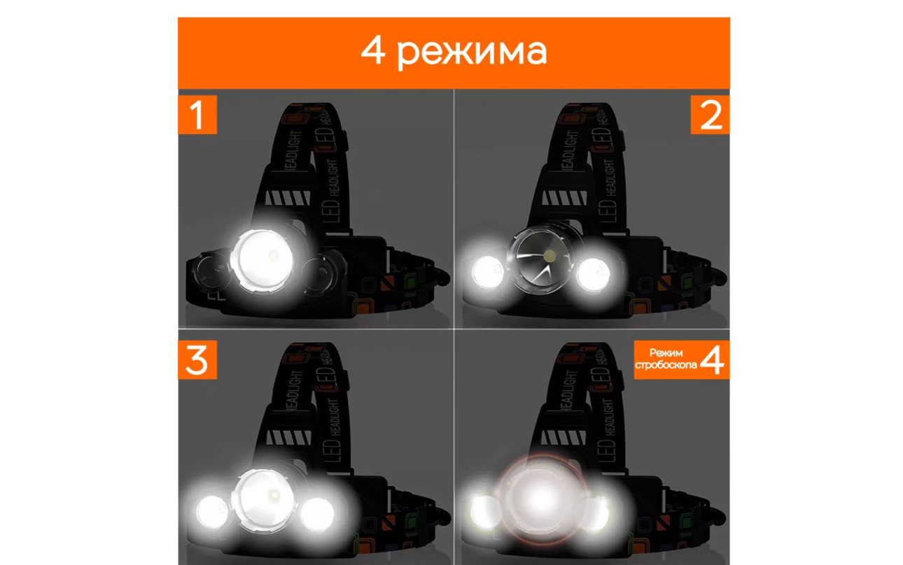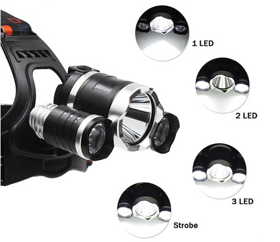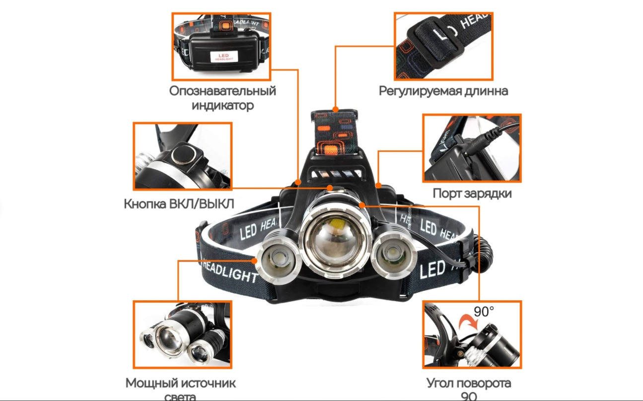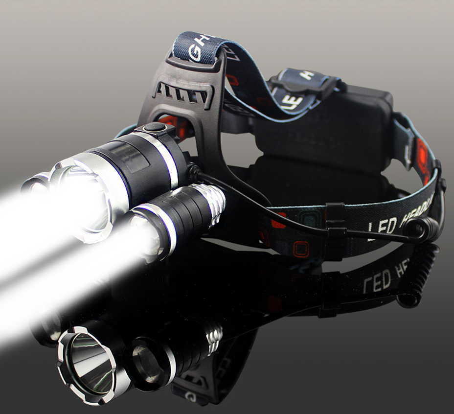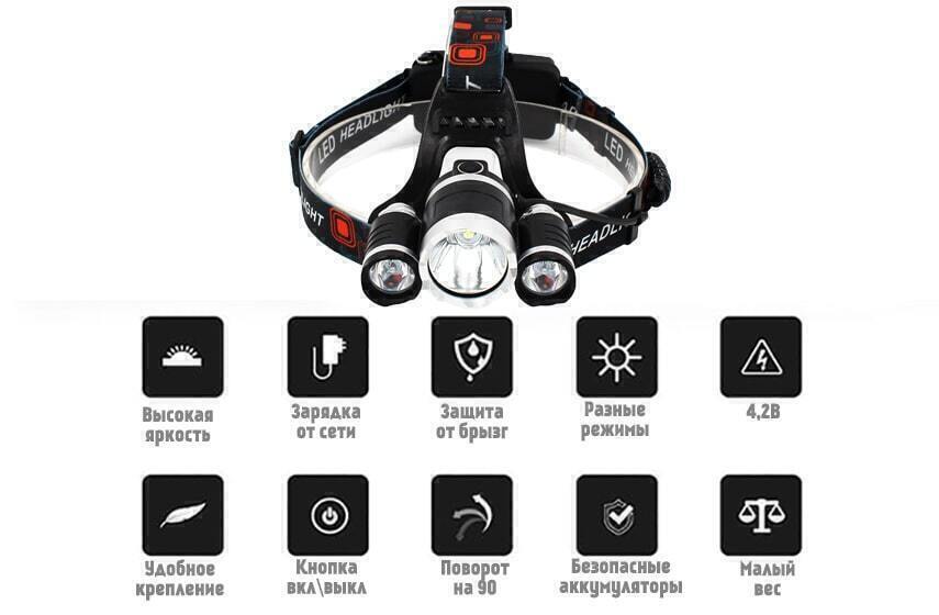 Мощный налобный светодиодный аккумуляторный фонарь HL-8022 (3 источника + полный комплект)
