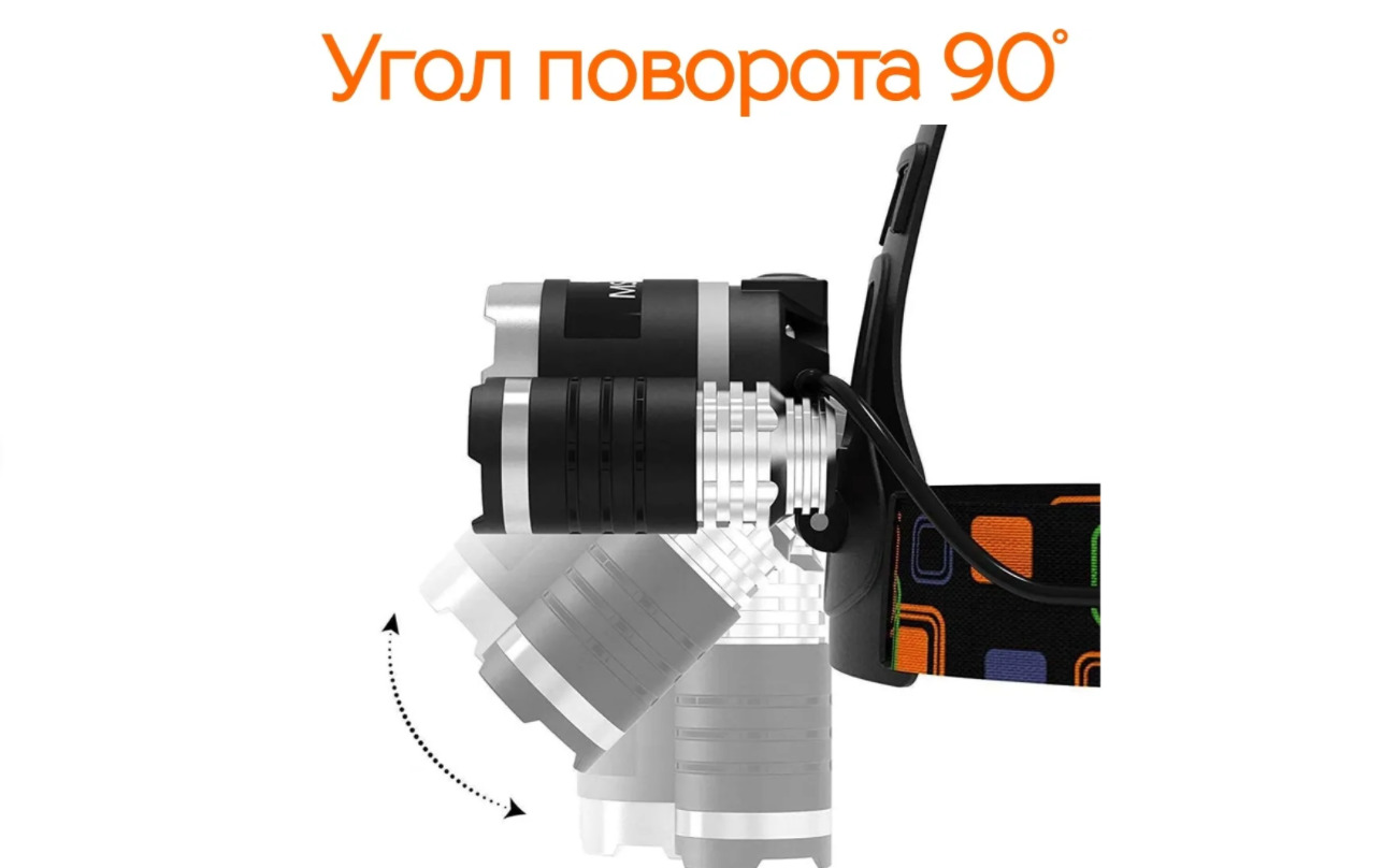 Фонарь налобный, аккумуляторный, 5 светодиодов, с зумом серебристый. Арт.2800