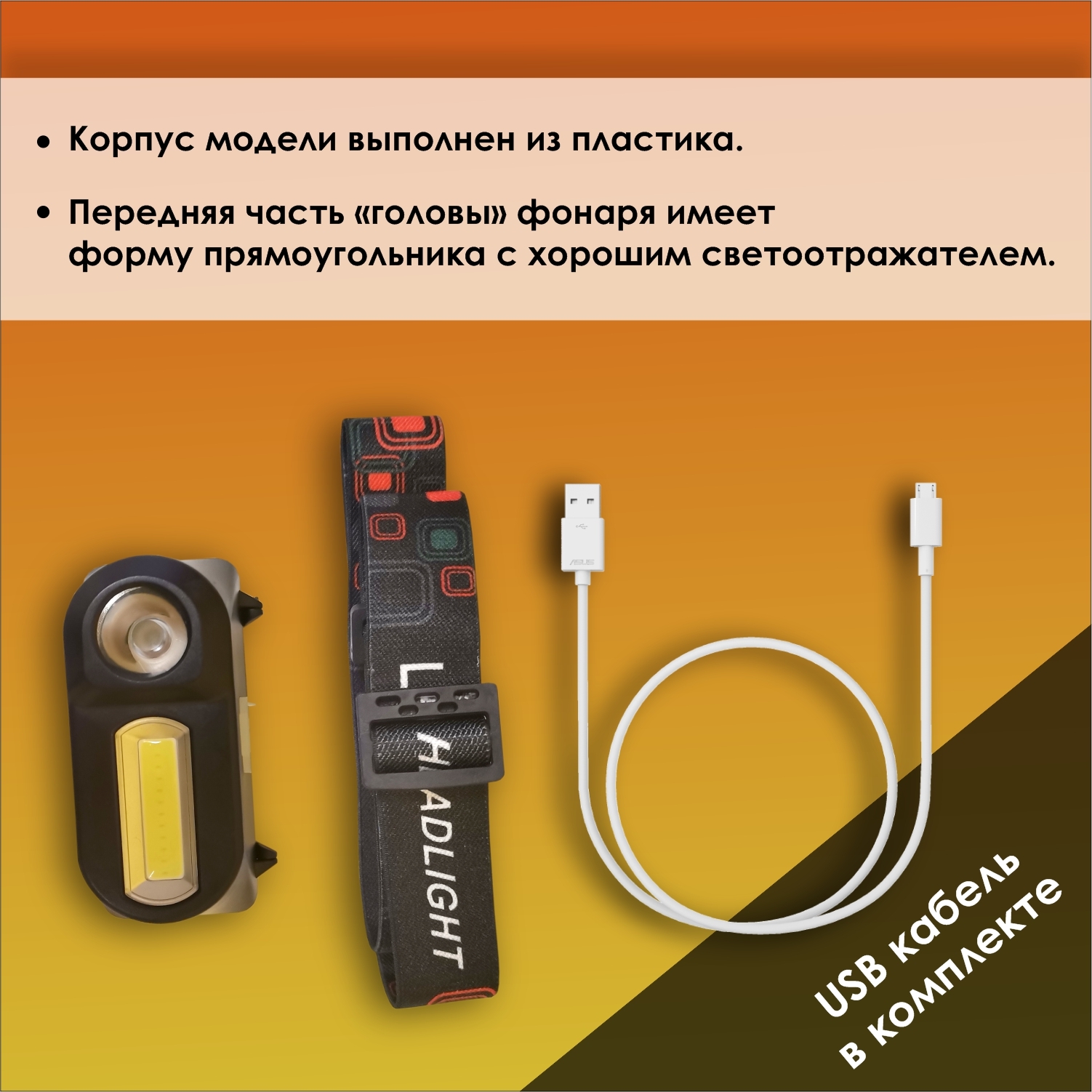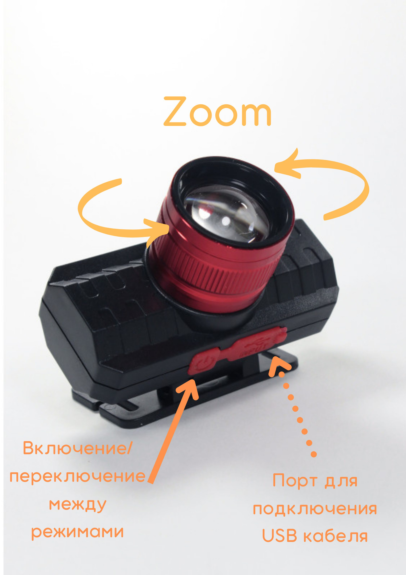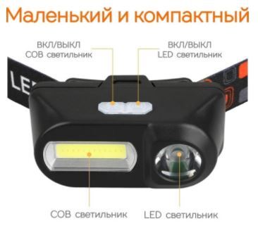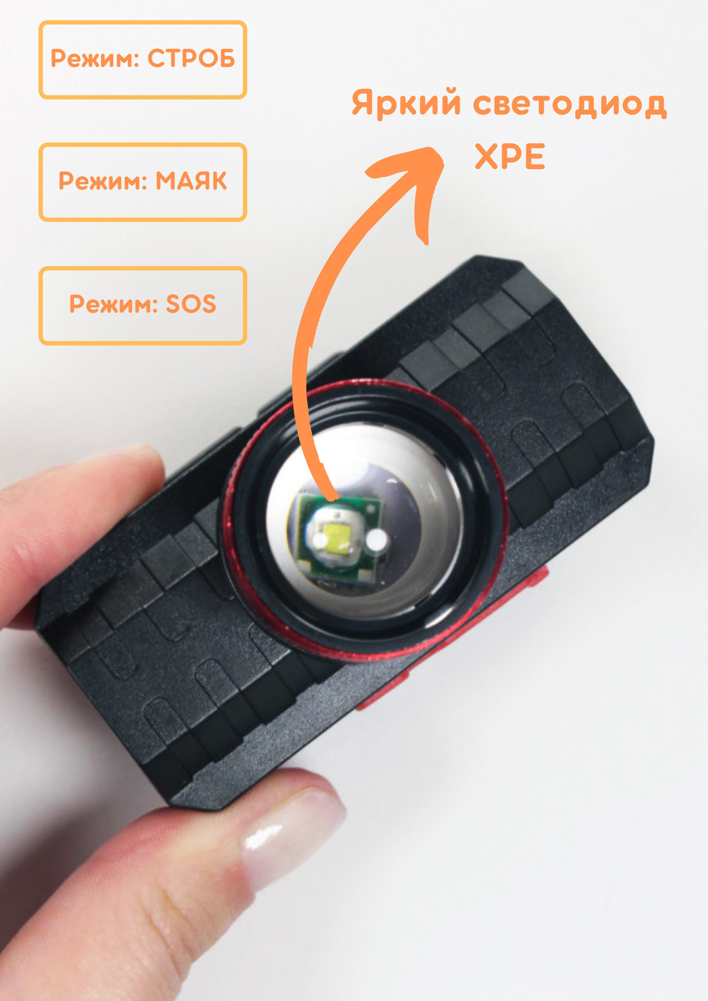 Фонарь светодиодный с креплением на козырек бейсболки перезарежаемый