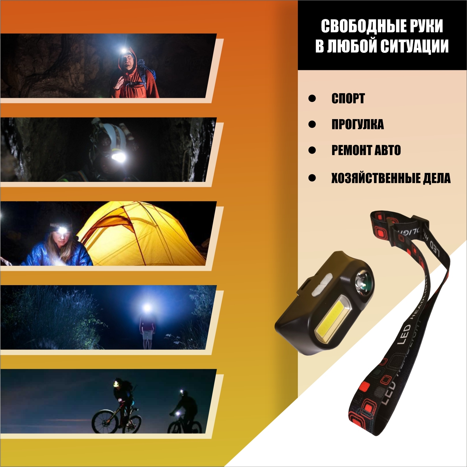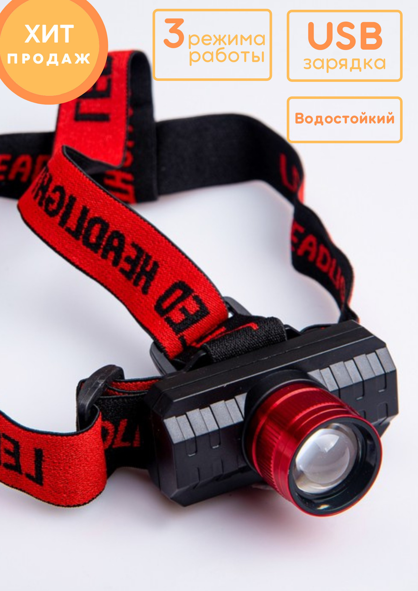 Фонарь тройной налобный LED Headlight, аккумуляторный