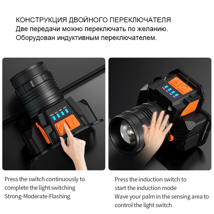 Мощный светодиодный налобный аккумуляторный фонарик для работы, туризма, рыбалки