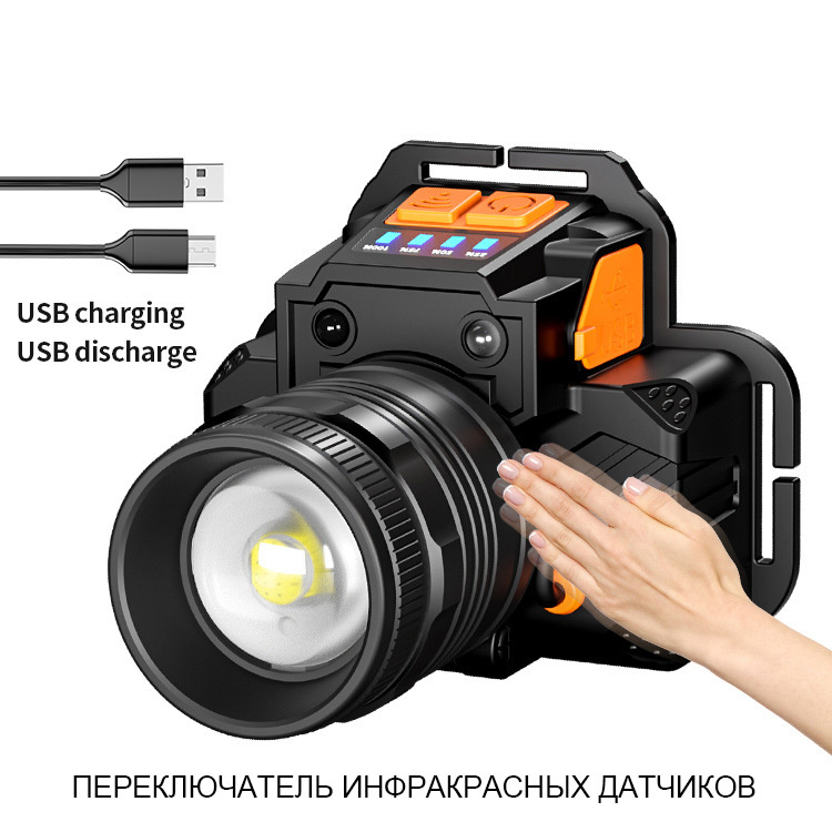 Налобный светодиодный LED COB фонарь, для работы, туризма, рыбалки и охоты, micro-USB зарядка