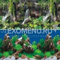 Фон 9026/9028, 0,3*15м "Тропический водопад/Скалы в глубине"