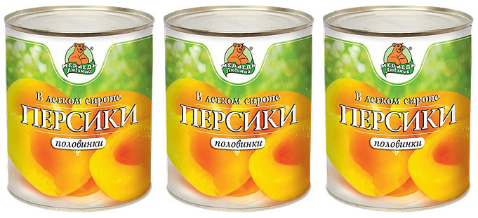 Персики отборные Медведь Любимый 3 шт по 850мл половинки