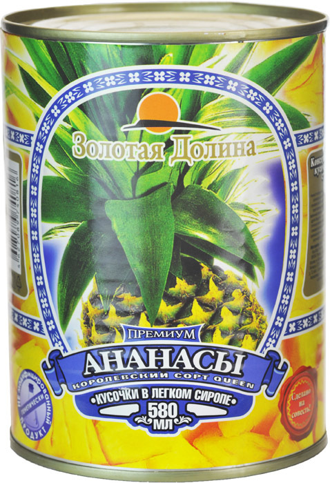 Ананасы кусочки Золотая Долина 580мл 6шт