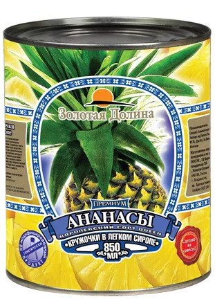 Ананасы кусочки Золотая Долина 850мл 6шт