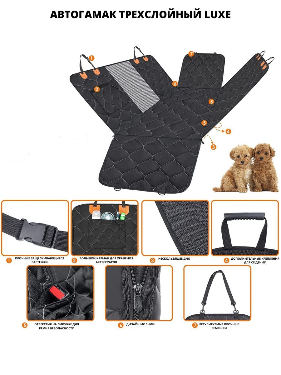 Автогамак для перевозки собак/ Гамак для собак/ Накидка на заднее сиденье автомобиля/ Черный LUXE.
