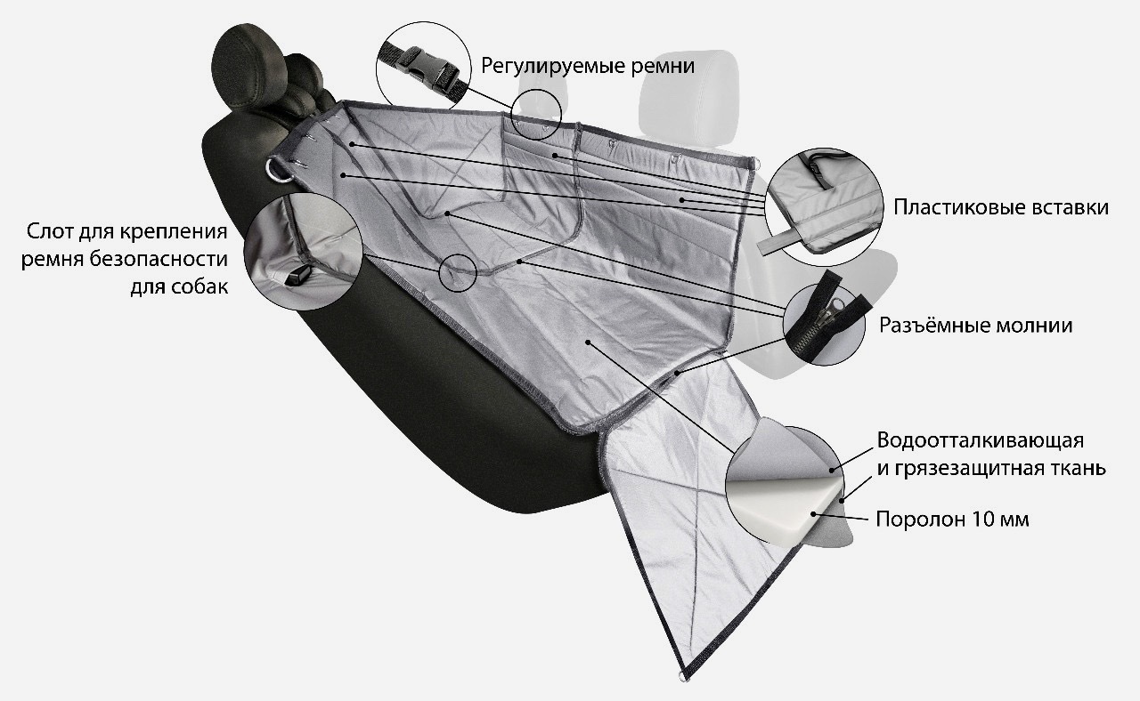 Автогамак усиленный с защитой подголовников, модель "Эксперт" (Россия)