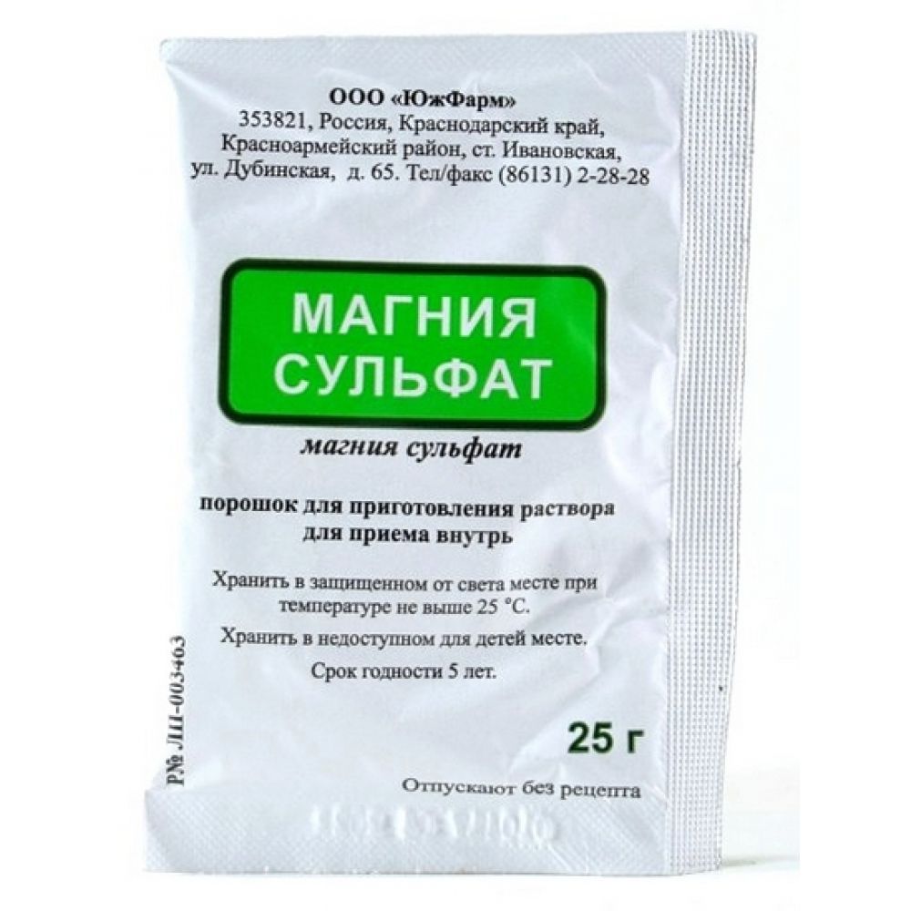 Магния сульфат 25 гр порошок для приготовления раствора для приема внутрь пакет 1 шт