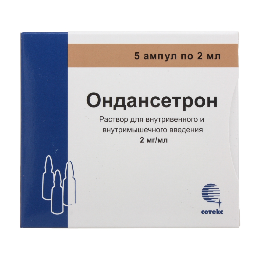 Ондансетрон, 2 мг/мл, раствор для внутривенного и внутримышечного введения, 2 мл, 5 штук