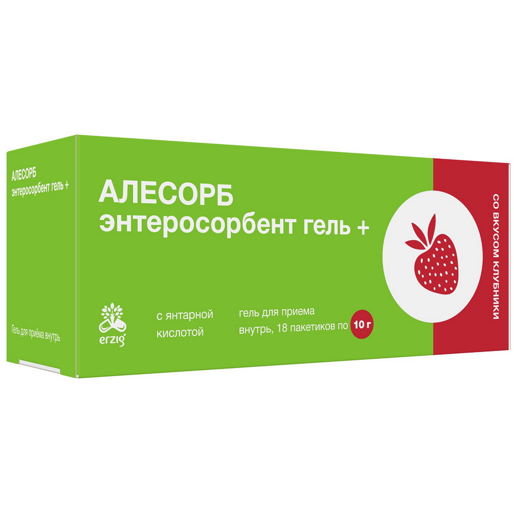 Алесорб Энтеросорбент Гель для приема внутрь клубничный 10 г 18 шт.