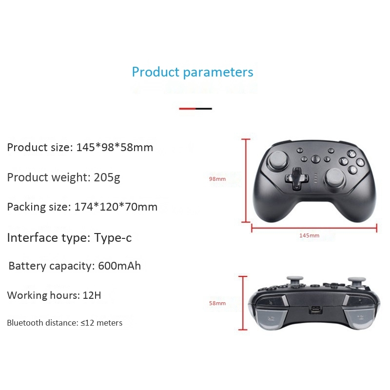 Геймпад Aolion Беспроводной Bluetooth GamePad Игровой контроллер для Switch Pro, черный