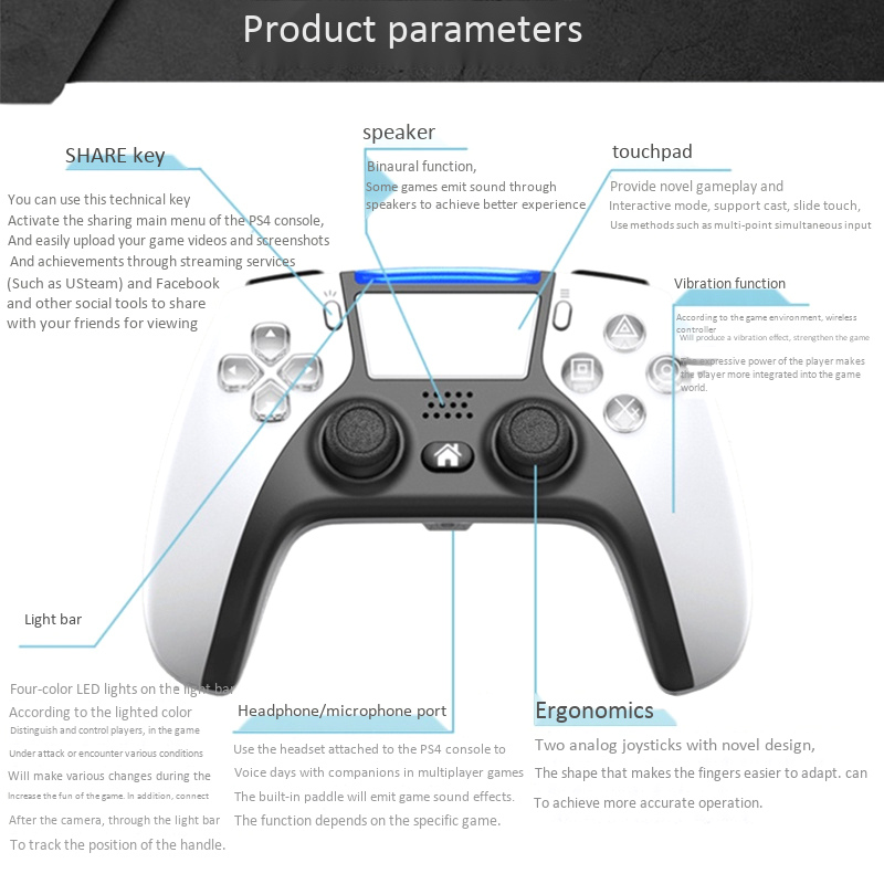 Геймпад PS4 (джойстик PS4) для игровой консоли беспроводной, черный