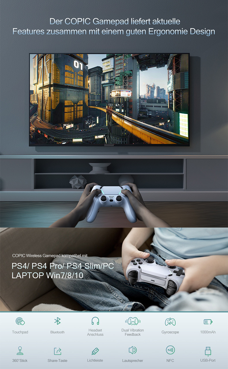 Геймпад беспроводной Dualshock 4 для PlayStation / джойстик для ПК / черный /