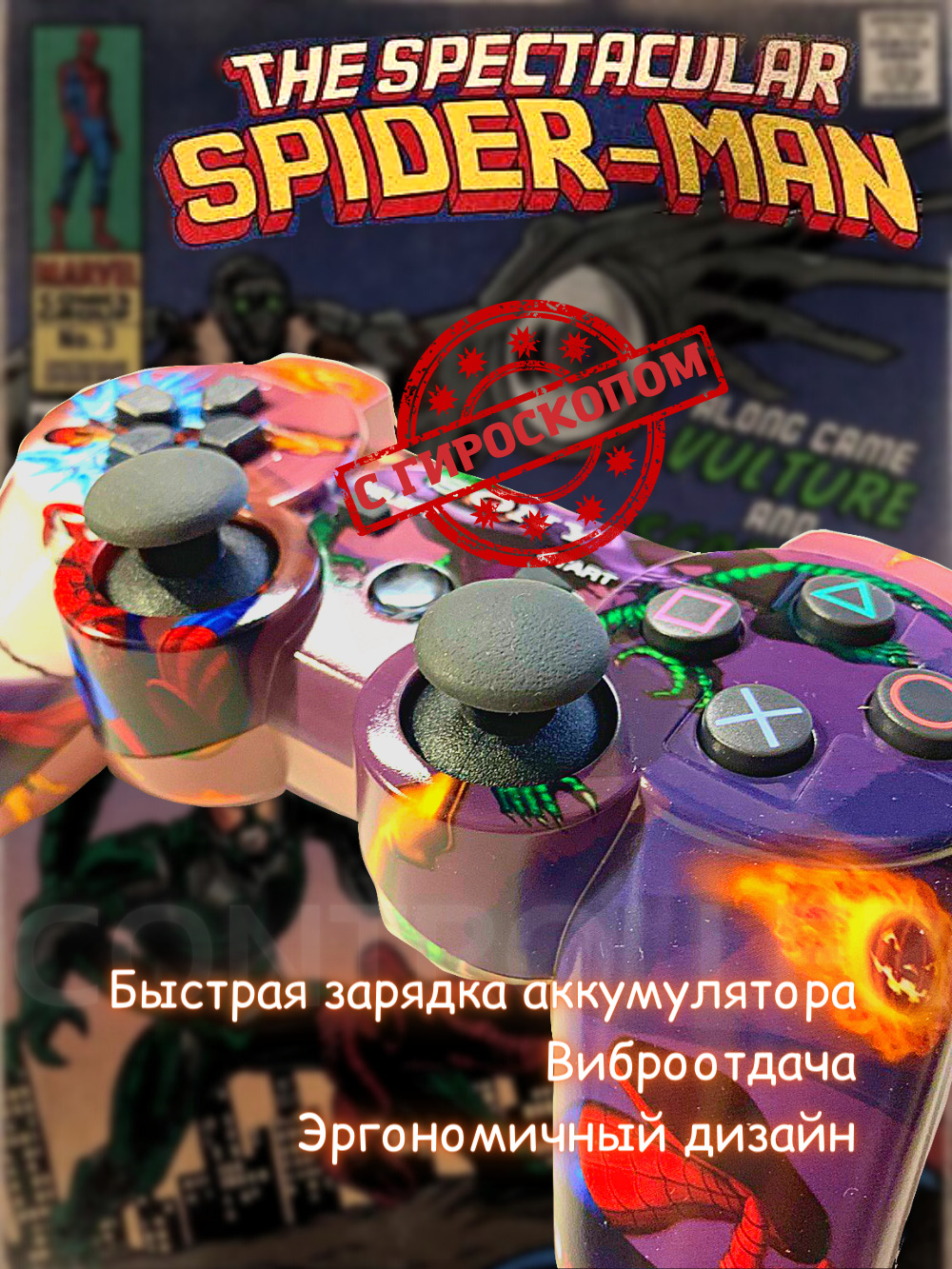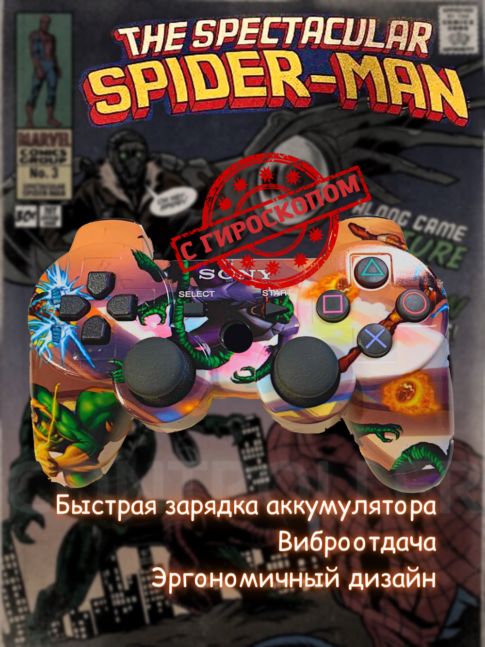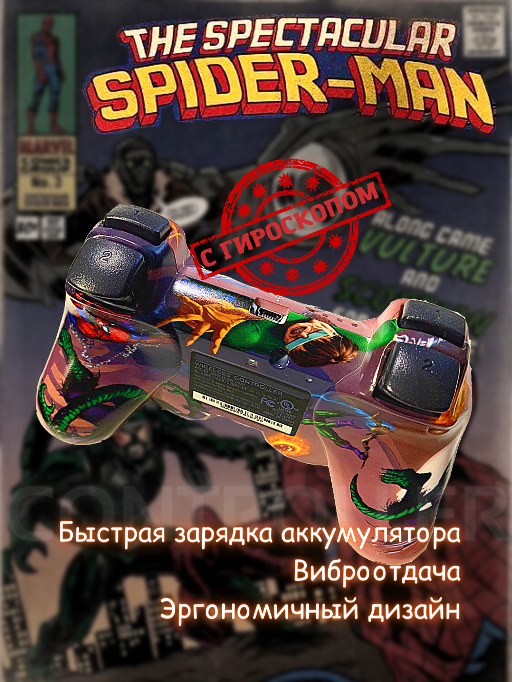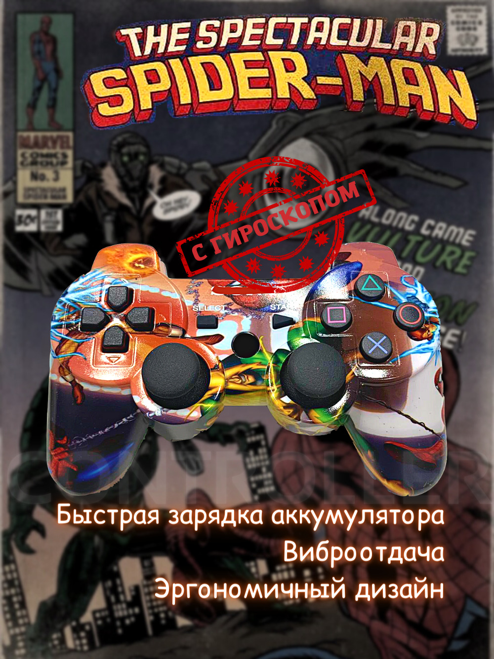 Геймпад Беспроводной джойстик для Playstation 3 (PS3) Человек Паук 1, разноцветный
