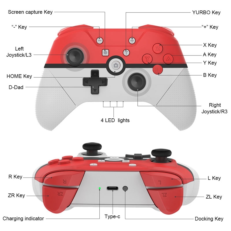 Геймпад Игровой контроллер Bluetooth Беспроводной с функцией TURBO Motion Sensing Vibration для Nintendo Switch Pro, черный
