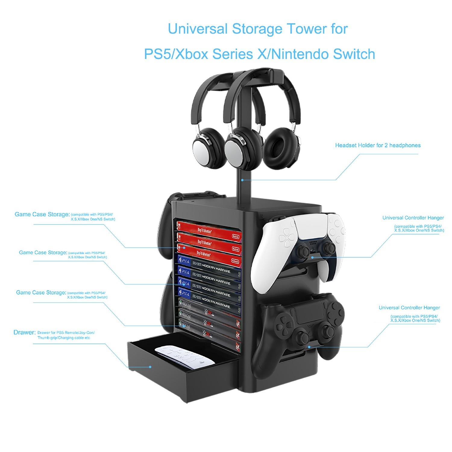 Геймпад Подставка-подставка для хранения и двойная вешалка для PS5, ручка Xbox, черный