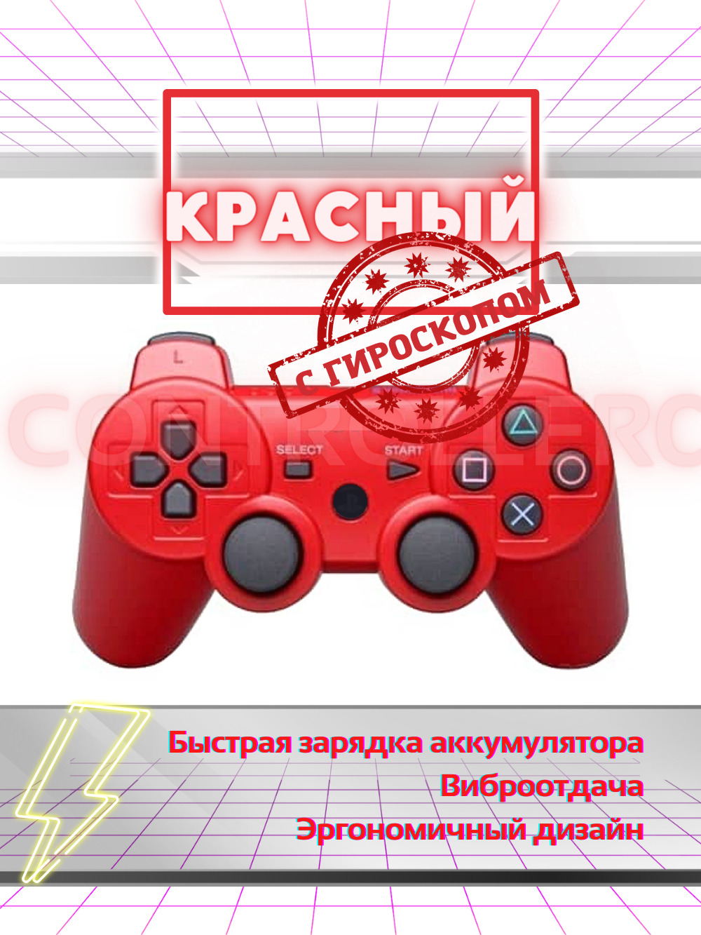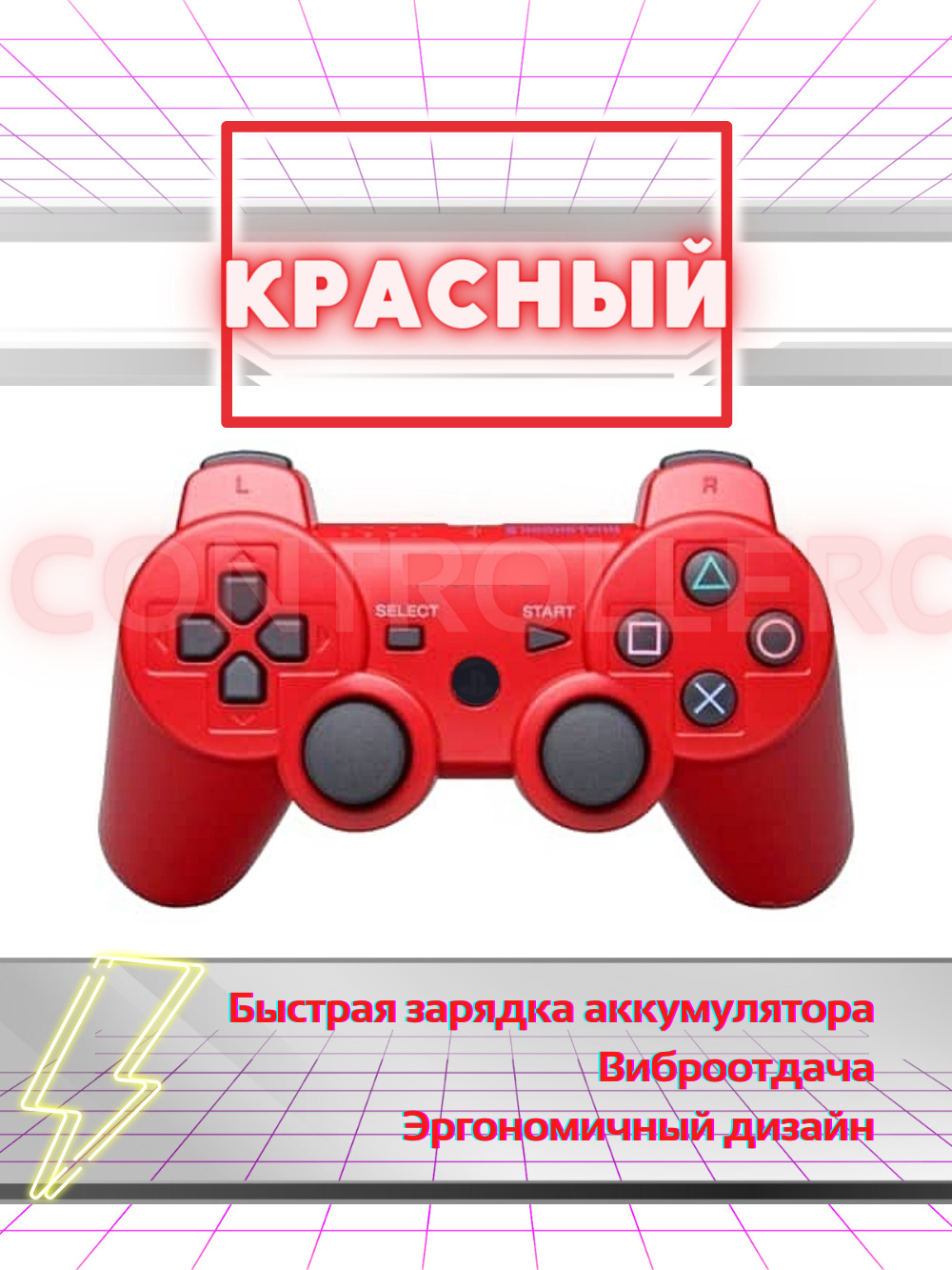 Геймпад Беспроводной джойстик для Playstation 3/Dualshock 3 (PS3) Красный, красный