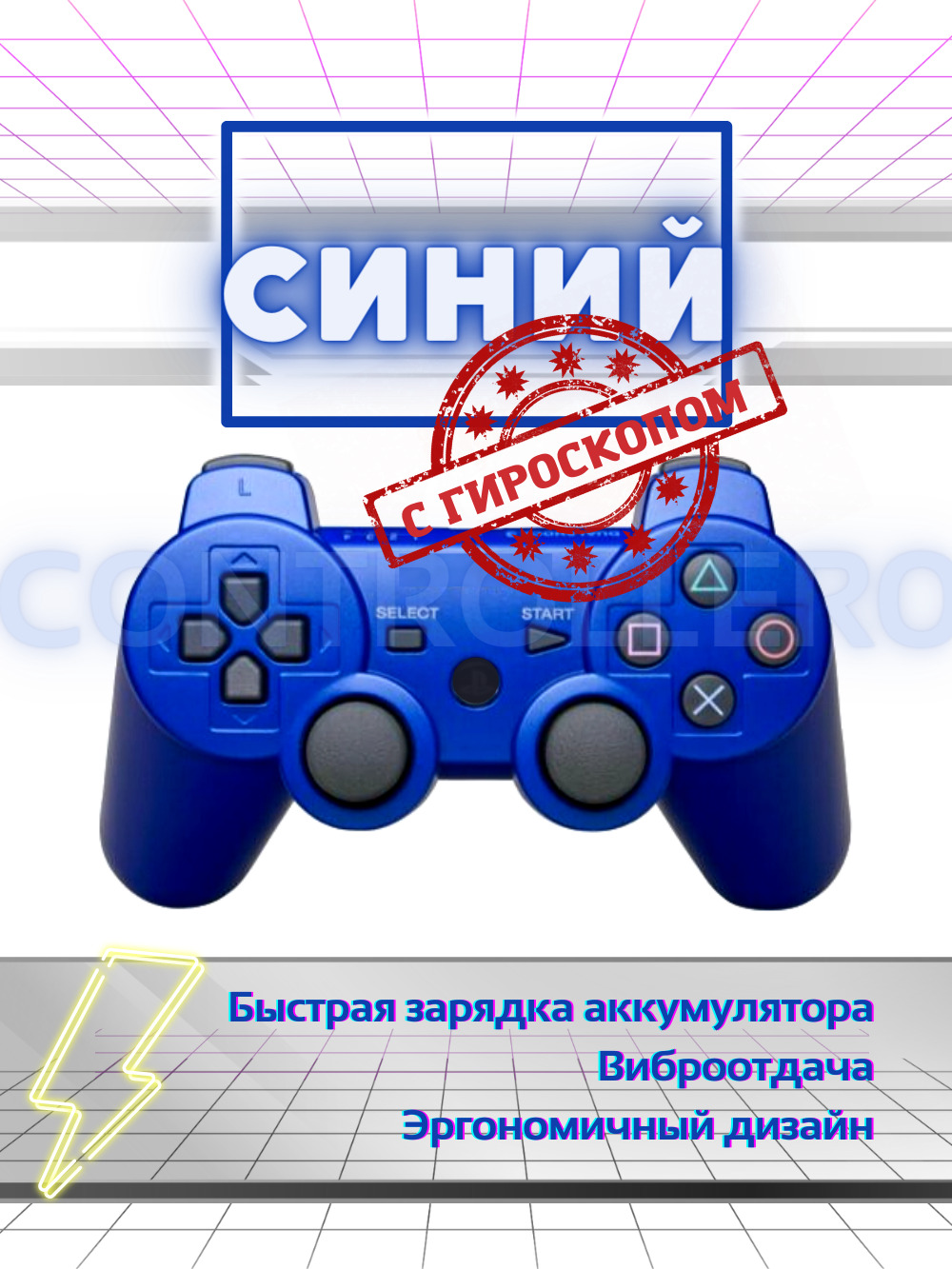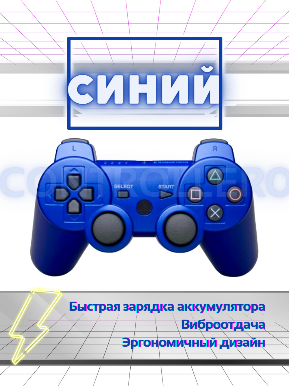 Геймпад Беспроводной джойстик для Playstation 3/Dualshock 3 (PS3) Синий, синий