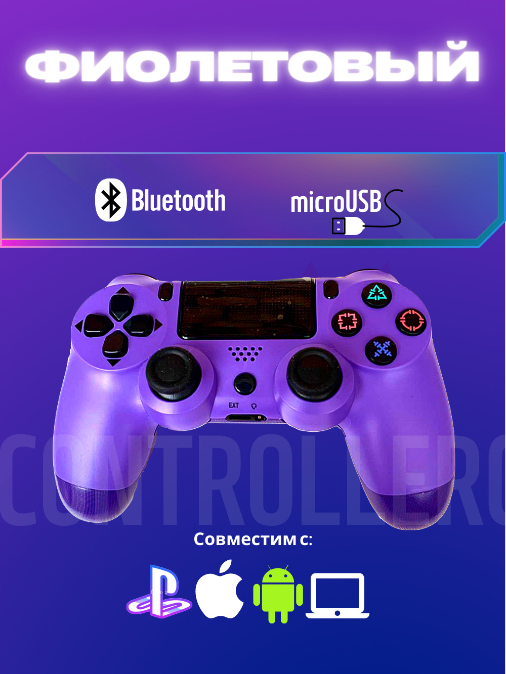 Геймпад Джойстик беспроводной для Playstation 4 V2/PS4/Dualshock 4/Фиолетовый, фиолетовый