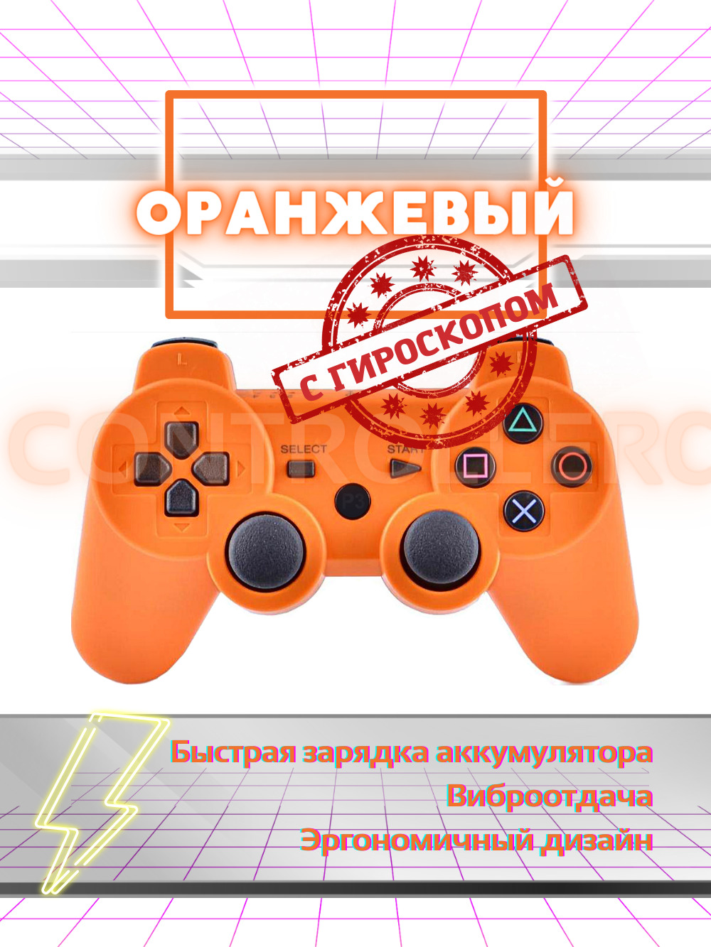 Геймпад Беспроводной джойстик для Playstation 3/Dualshock 3 (PS3) Оранжевый, оранжевый