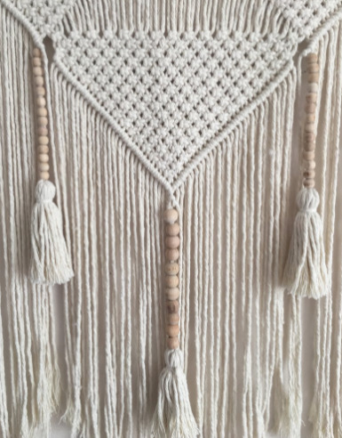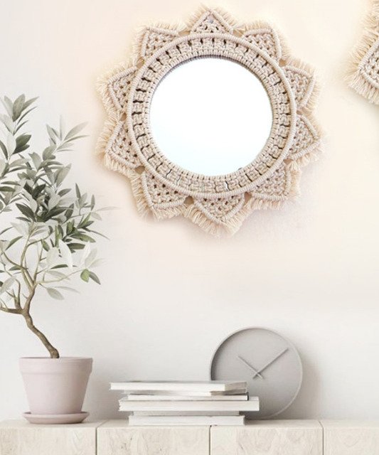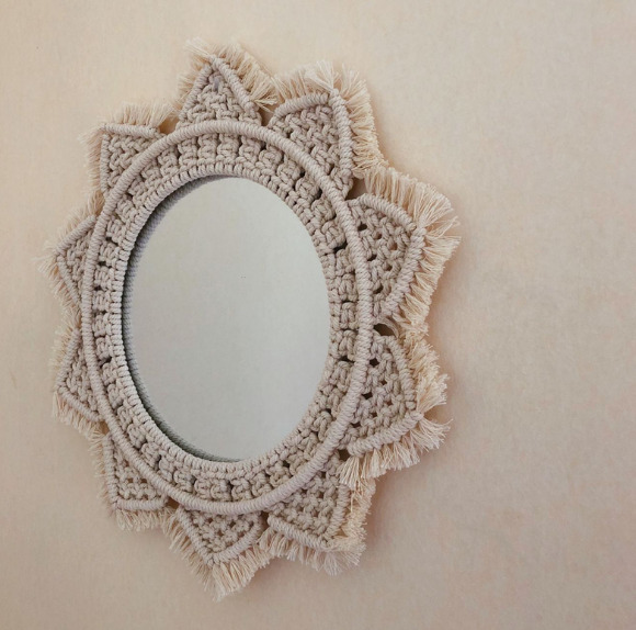 Гобелен из макраме настенное декоративное зеркало Богемия (белый)