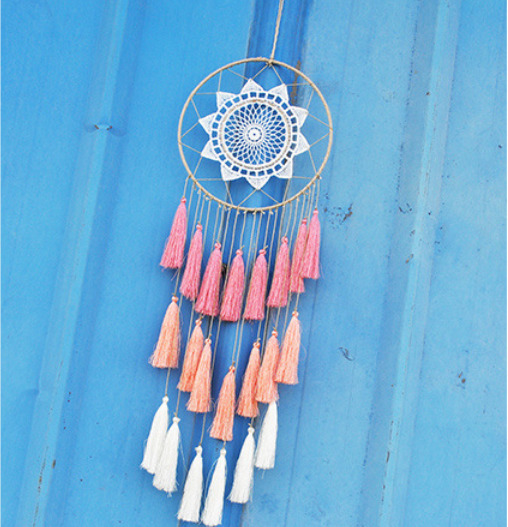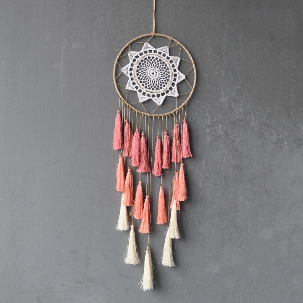 Макраме Богемный Гобелен Настенный Ручной Тканый Кисточкой Домашний Декор Dream Catchet (Розовый)