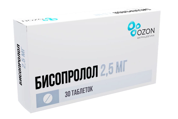 Бисопролол 2,5 мг 30 шт. таблетки, покрытые пленочной оболочкой