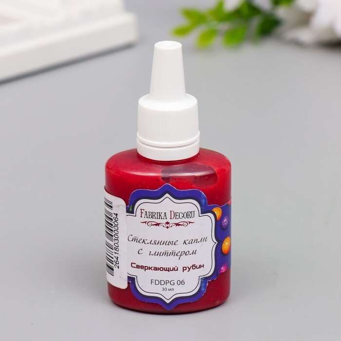 Стеклянные капли с глиттером"Fabrika Decoru" 30 мл, сверкающий рубин
