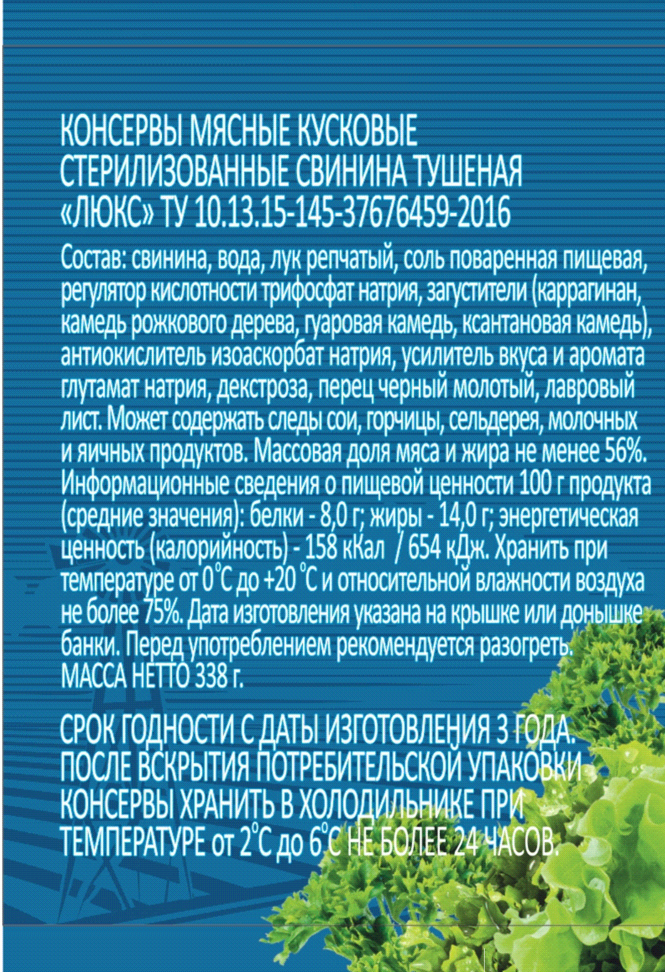 Свинина Тушеная "Люкс" ТУ "Старорусские рецепты" 4 шт. 338 гр.