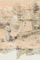 Гравюра Виктор Симов "У колодца". Приложение к журналу "Россия". Российская империя, 1880-е годы