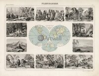 Постер Старинные карты "Карта полушарий", 23x20 см, на бумаге