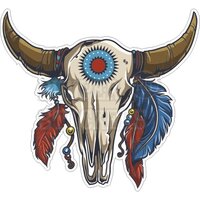 Переводная временная татуировка "Череп быка украшенный перьями"