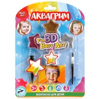 Игрушка Аквагрим n Тату MultiArt блестки 3 цв., 2 кисточки, 2 трафарета для тату на блистере в кор