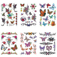 Временные татуировки набор 6 листов 12х17,5 см. Бабочки, розы
