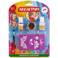 Аквагрим & тату "Multiart". Блестки, кисточка, 4 трафарета для тату, 2 краски на блистере