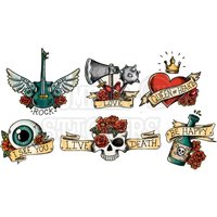 Переводная временная татуировка "Набор Классические Стикеры Сердце Череп Гитара Глаз"