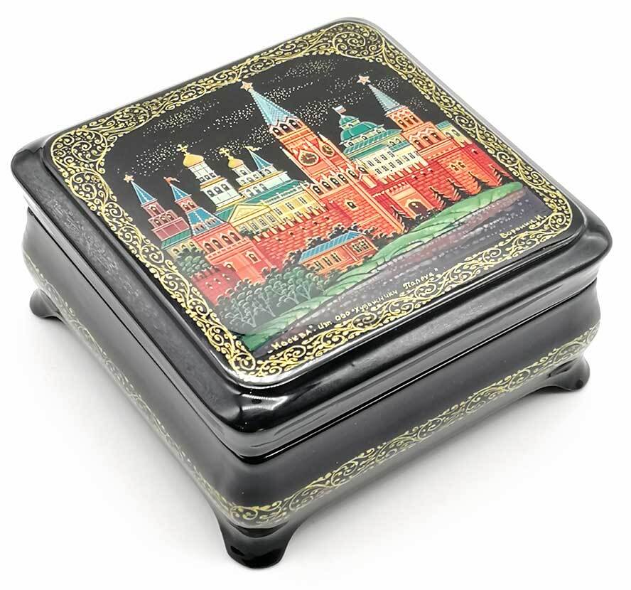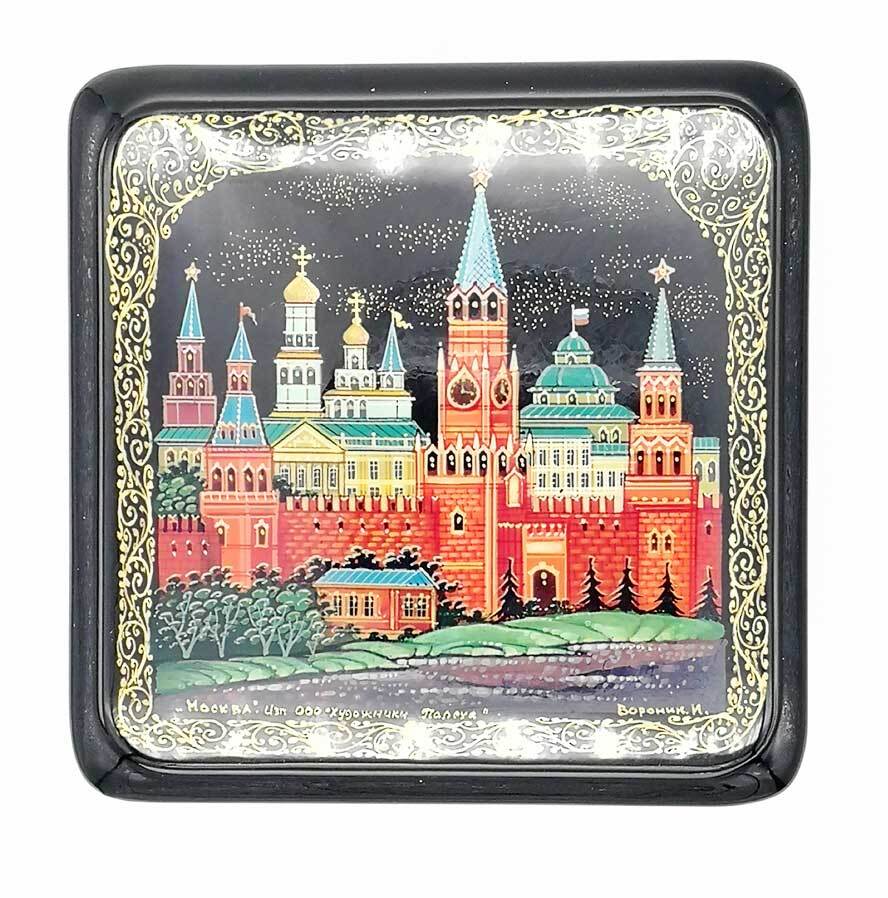 Шкатулка "Москва" лаковая миниатюра Палех 9х9 см.