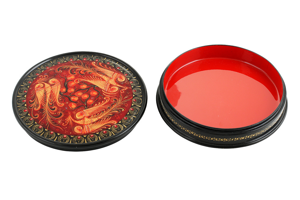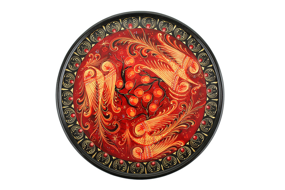 Шкатулка Палех "Жар-Птица", тарелка, авт. Николаева, 15х15х4см