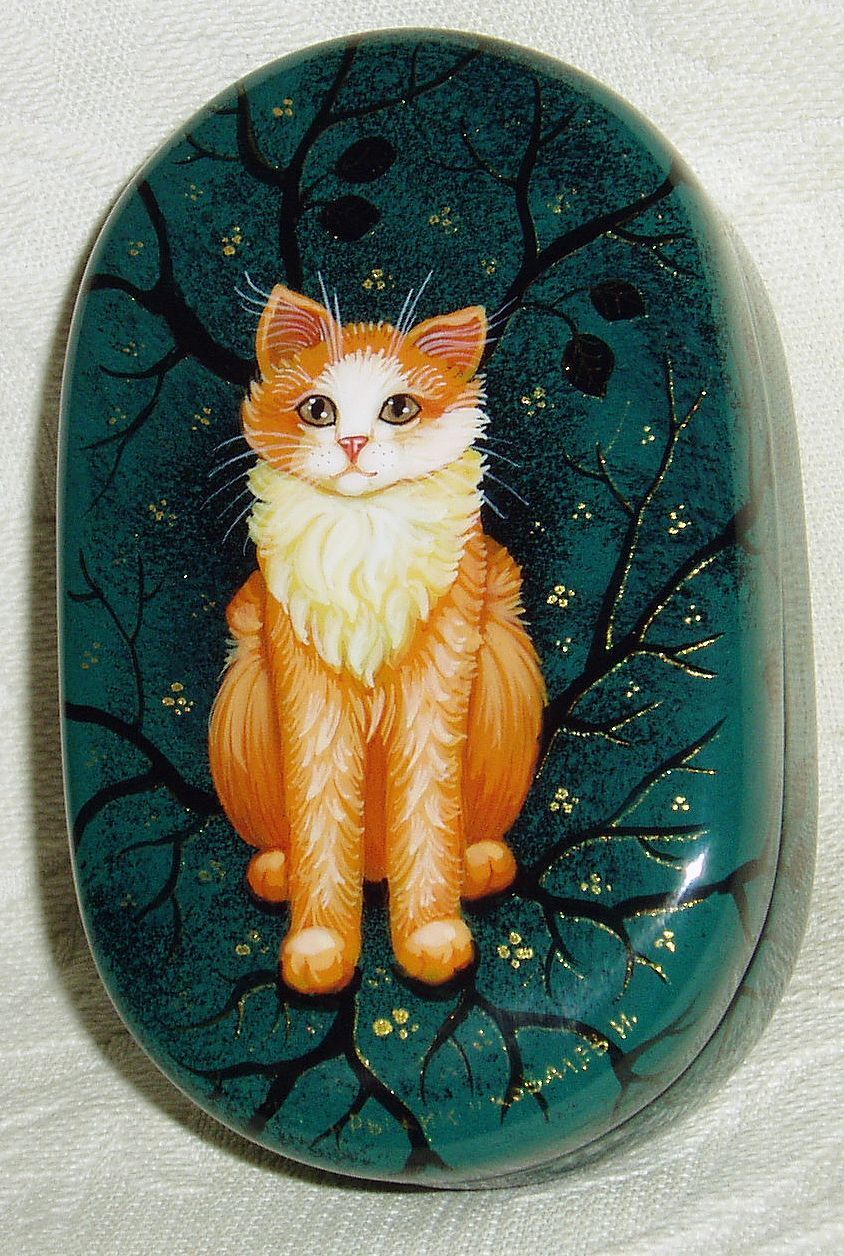 Рыжий кот / Шкатулка / Ручная роспись / Лаковая миниатюра / Сувенирная коробка / Кот