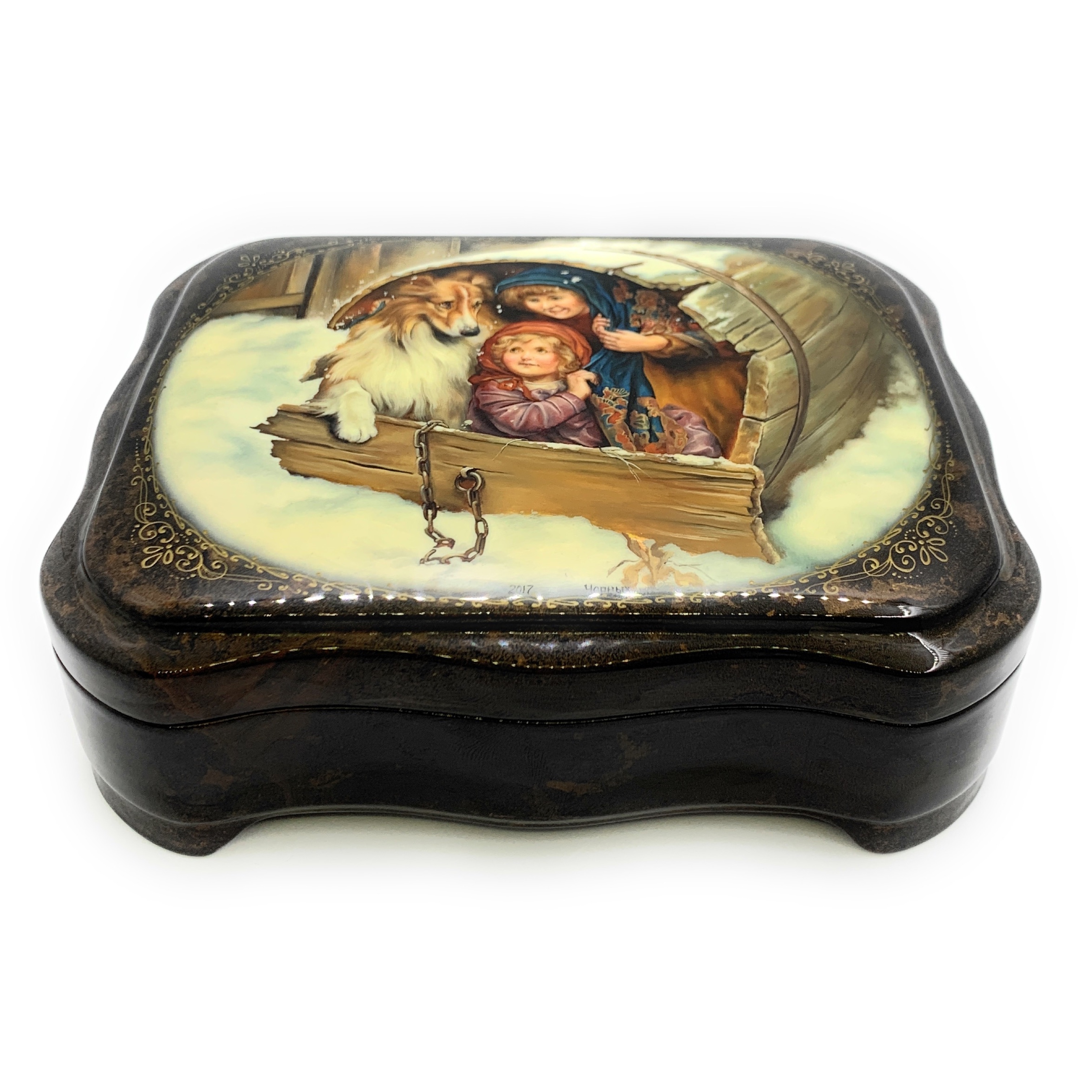 Шкатулка "Русский север №7" папье-маше, лаковая миниатюра Холуй, ручная работа