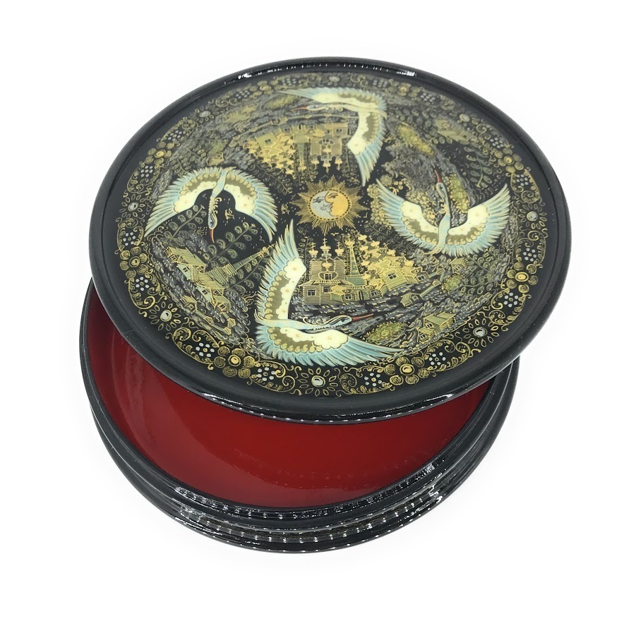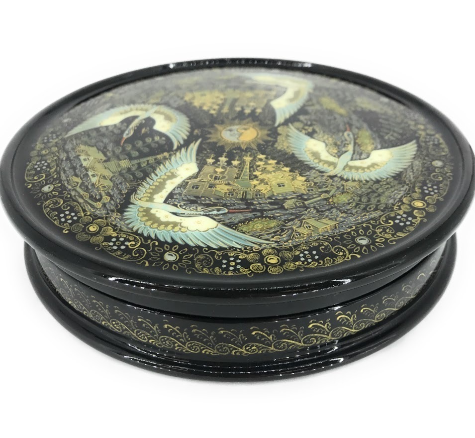 Шкатулка для украшений "Север №4" папье-маше, лаковая миниатюра Холуй, ручная работа